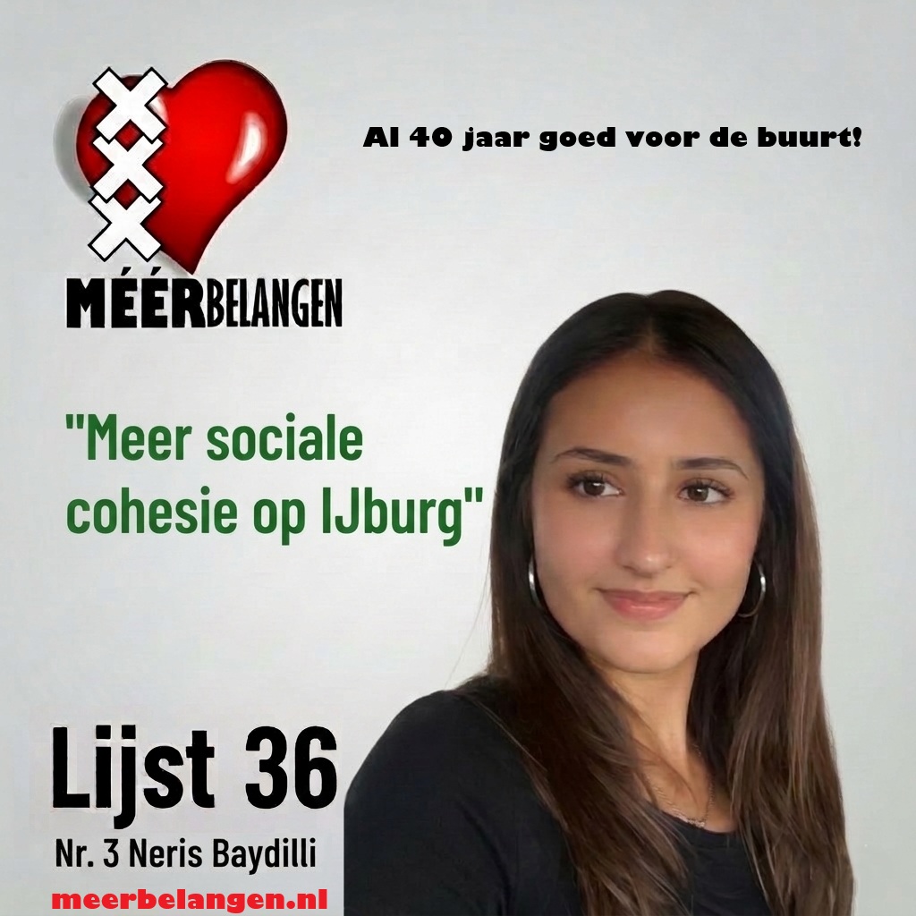 De jongste op de kandidatenlijst van Méérbelangen is Neris Baydilli (21). Deze studente heeft een groot sociaal hart en ziet graag dat er meer samenhang komt op IJburg. Ze zet zich in voor ontmoetingen tussen mensen van verschillende afkomst. Stem 18 maart op Méérbelangen, al 40 jaar goed voor de buurt! Kijk op meerbelangen.nl/programma